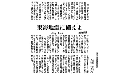 | 東海地震に備えよ 東京大学地震研究所教授 島崎邦彦氏 | 読売新聞 | 2003/09/20 |