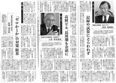 | 東日本大震災 避難 「ゼロか1か」の対策 限界 島崎氏 入倉氏 | 日経新聞 | 2011/03/28 |