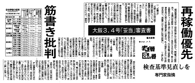 (17)大飯3、4号「妥当」審査書 検査基準見直しを 専門家指摘