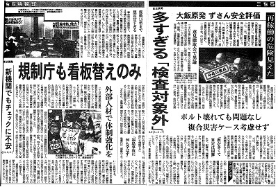 | 大飯原発ずさん安全評価 「検査対象外」多数 規制庁も看板替えのみ | 東京新聞 | 2012/02/21 |