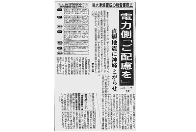 | 巨大津波警戒の報告書 電力側「ご配慮を」 貞観地震に神経とがらせ | 東奥日報 | 2012/02/26 |