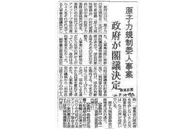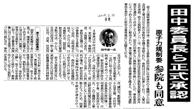 | 原子力規制委参院も同意田中委員長ら正式承認 | 東奥日報 | 2013/02/15 |