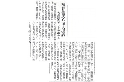 | 福井住民ら154人提訴 大飯原発差し止め求める | 東奥日報 | 2012/12/01 |