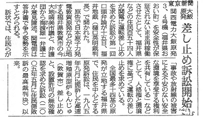 | 大飯原発 差し止め訴訟開始 | 東京新聞 | 2013/02/15 |