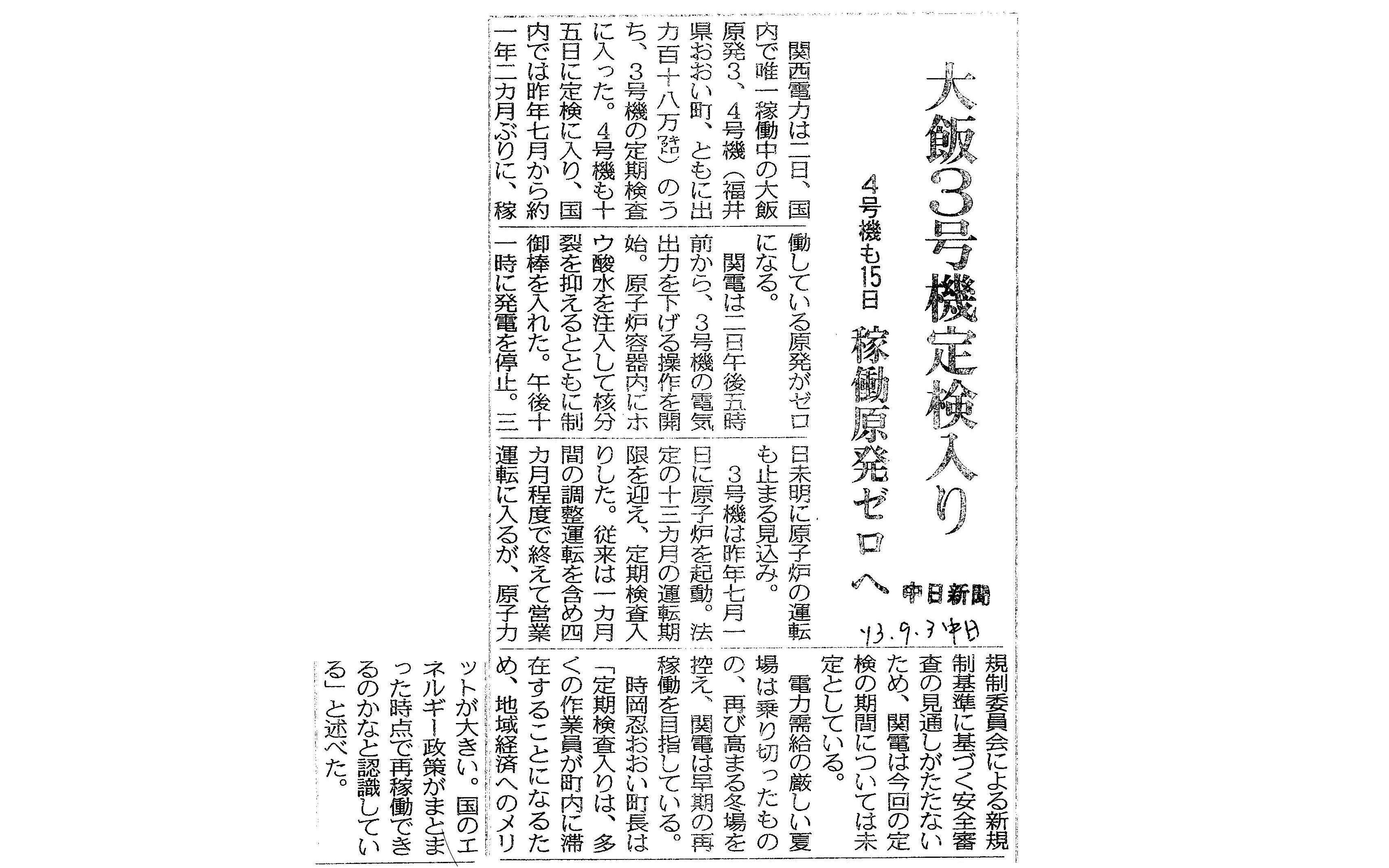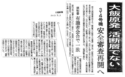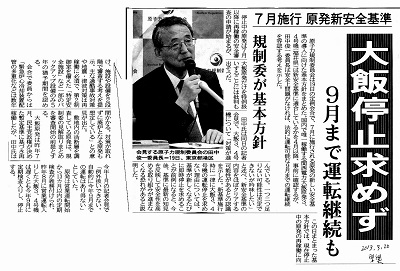 | 7月施工原発新安全基準規制委大飯原発停止求めず | 東奥日報 | 2013/03/20 |