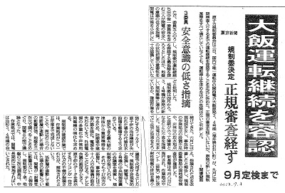 (29)7月施工原発新安全基準規制委大飯原発停止求めず