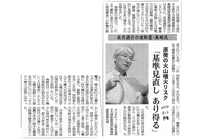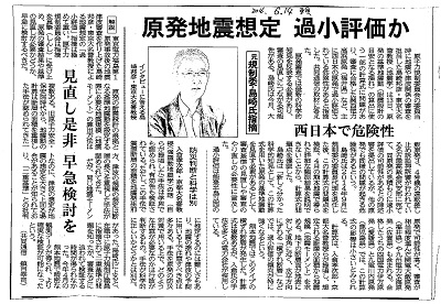 | 大飯「地震想定に欠陥」 控訴審、島崎元規制委員が証言 | 中日新聞 | 2017/04/25 |
