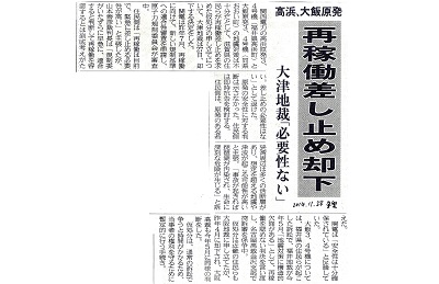 | 大飯原発「安全性を欠くとは言えない」 大阪高裁、運転差し止めを認めず | 毎日新聞 | 2020/01/30 |