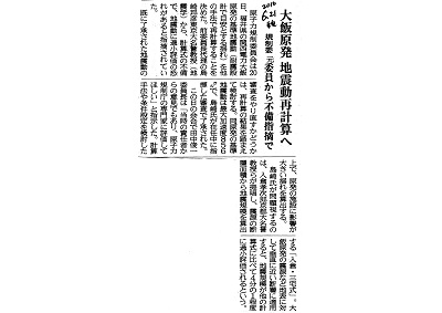 | 大飯原発 地震動再計算へ 規制委 元委員から不備指摘で | 東奥日報 | 2016/06/21 |
