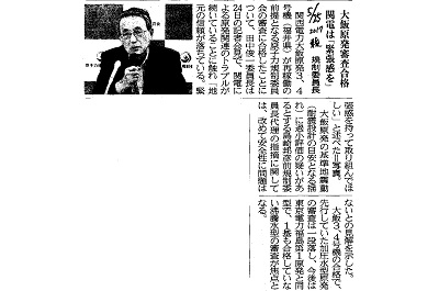 | 大飯原発審査合格 関電は「緊張感を」 規制委員長 | 東奥日報 | 2017/05/25 |