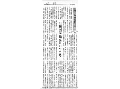 (1)社説 原子力規制委1年 信頼回復 独立貫いてこそ