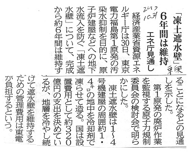 | 「凍土遮水壁」6年間は維持 エネ庁見通し | 東奥日報 | 2013/10/31 |