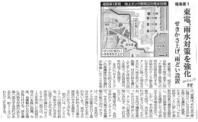 | 福島第一 東電、雨水対策を強化 せきかさ上げ、雨どい設置 | 東奥日報 | 2013/11/17 |