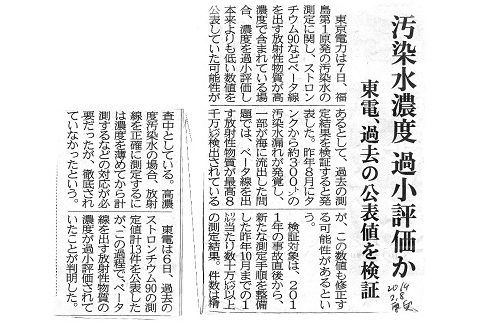 | 汚染水濃度 過小評価か 東電、過去の公表値を検証 | 東奥日報 | 2014/02/08 |