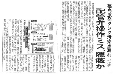 (7)福島原発タンク汚染水漏れ 配管弁操作ミス、隠蔽か