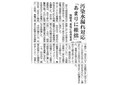 | 汚染水漏れ対応 「あまりに稚拙」 規制委、東電に改善要求 | 東奥日報 | 2014/02/27 |