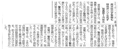 | 高水位示す警報も 移送ポンプ止めず 福島第1汚染水 | 東奥日報 | 2014/03/08 |