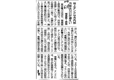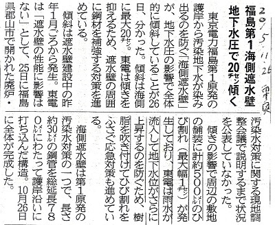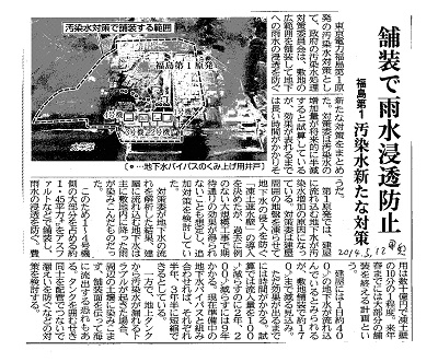 | 舗装で雨水浸透防止 福島第1 汚染水新たな対策 | 東奥日報 | 2014/05/12 |