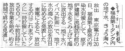 日本政府が20日、福島第一原発で発生した汚染水(処理水)を海へ放流する場合、韓国など周辺国が安全性を確認できるように全ての情報を透明に公開し、監視できるよう協力したいという意向を明かした。(後略)