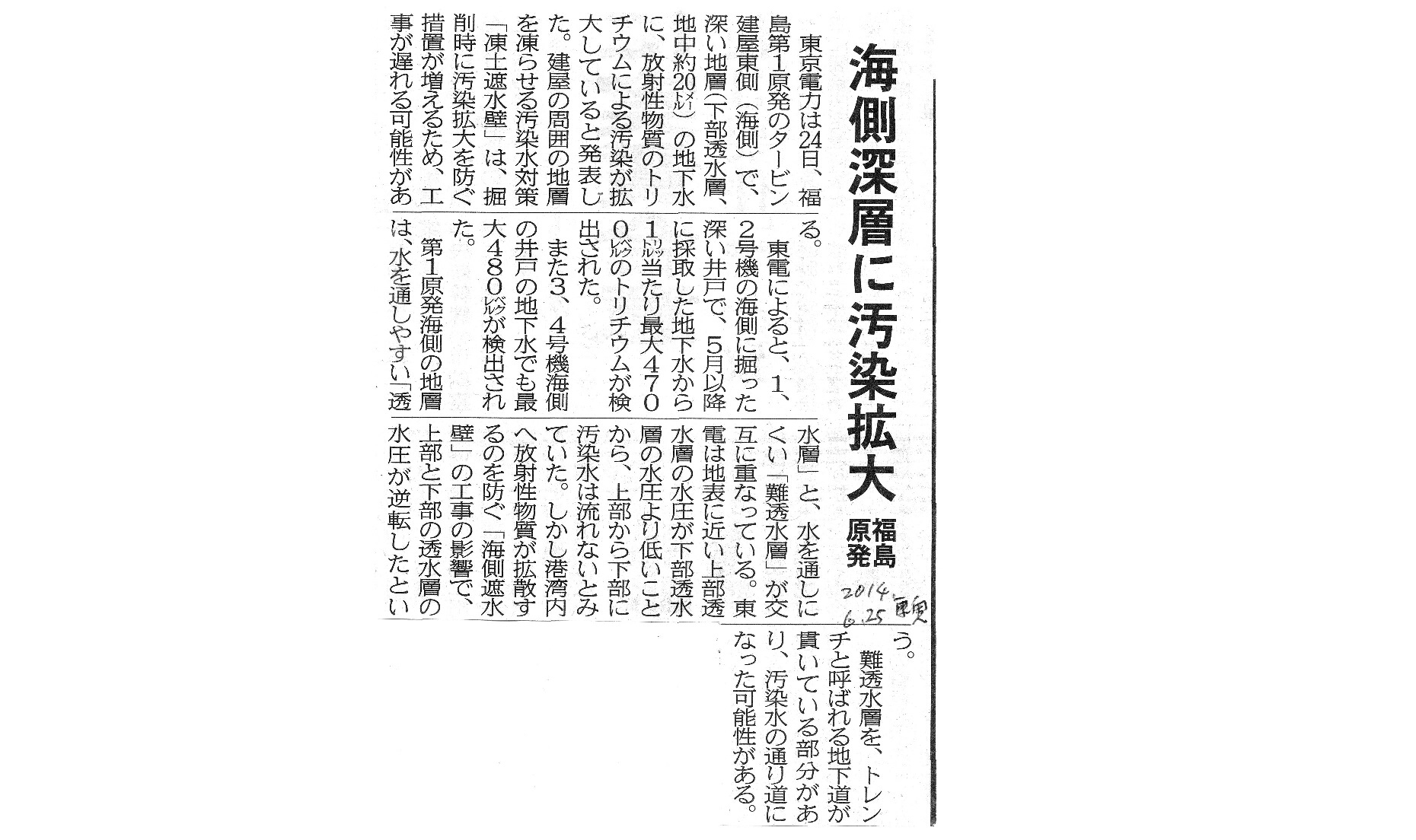 | 原発地下水放出 対策本番はこれからだ | 毎日新聞 | 2014/03/27 |