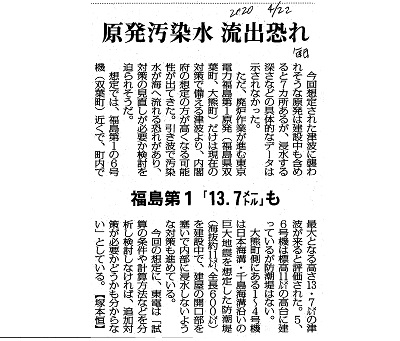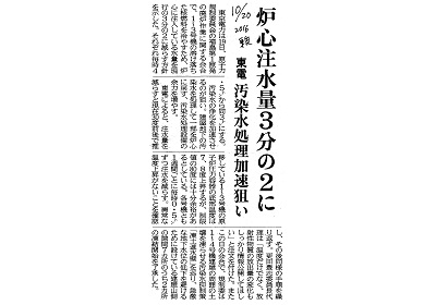 | 福島第1原発の汚染水1日130トンに抑制 東電、目標達成確実に | 河北新報 | 2020/12/01 |