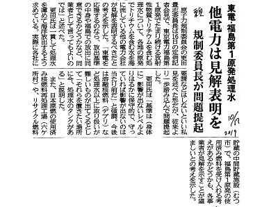 10月27日に政府が「海洋放出」決定かと報じられている中で、唯一の規制機関のはずの原子力規制委員会の更田委員長が露骨に「海洋放出」を是認することにあきれた。(後略)