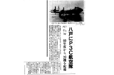| 八戸にP3C航空隊 60年度から、20機を配備 | 東奥日報 | 1983/08/30 |