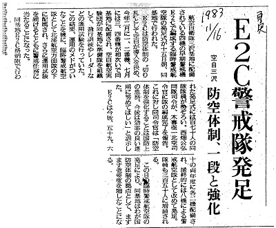 | E2C警戒隊発足 空自三沢 防空体制、一段と強化 | 東奥日報 | 1983/11/16 |