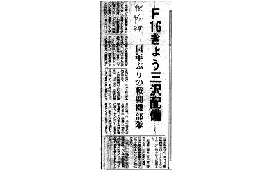 | F16きょう三沢配備 14年ぶりの戦闘機部隊 | 東奥日報 | 1985/04/02 |