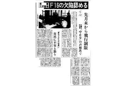 | 度重なる墜落 検証 戦略基地三沢とF16(5) 安全性 半ば切り捨て 背景に機能優先の軍事思想 | 東奥日報 | 1991/05/23 |