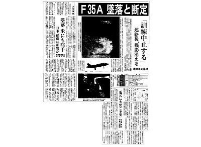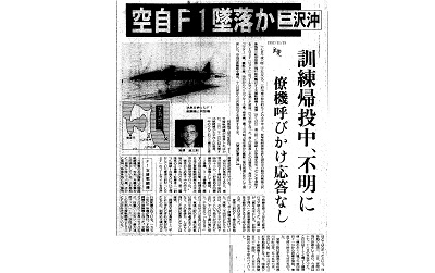 | 空自F1墜落か 三沢沖 訓練帰投中、不明に 僚機呼びかけ応答なし | 東奥日報 | 1987/11/18 |