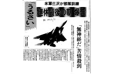 | 米軍三沢が部隊訓練 連休最後の朝 爆音 「うるさい」 「無神経だ」 苦情殺到 | 東奥日報 | 1991/05/07 |