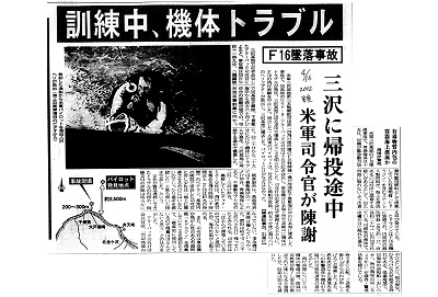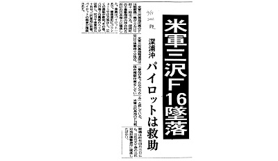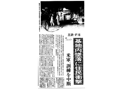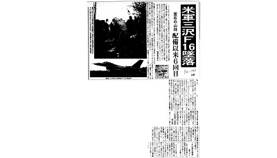 | 三沢・F16 基地内墜落に住民衝撃 米軍、訓練を中断 | 東奥日報 | 1991/05/08 |