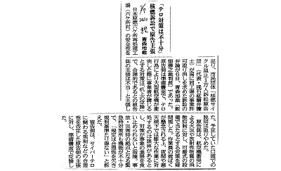 | 「テロ対策は不十分」核燃訴訟で原告主張 青森地裁 | 東奥日報 | 2020/03/07 |
