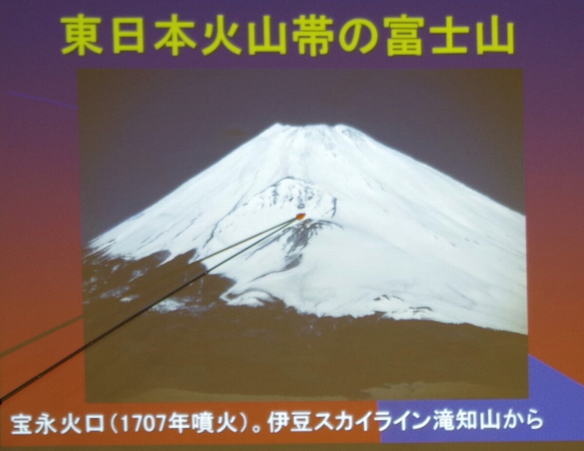 【補足】 ・「富士山噴火 過去の前兆や大地震との連動についての基礎知識」(小山真人氏)の「2.大地震は富士山の噴火を誘発させるか」の中に「富士山の1704年異常と1707年噴火の事件推移のまとめ」という図がある。 ・当講演レジュメの相当ヶ所を以下に抜粋する。 「「地震が誘発した」有名な噴火がある。1707 年の宝永地震の 49 日後に富士山が大噴火した宝永噴火だ。この噴火は富士山の三大噴火のひとつになった大きな噴火だった。関東地方にも多量の火山灰を降らせた。この火山灰は、噴火後わずか 2 時間で江戸に達した。富士山から新宿まで 100km しか離れていないことを忘れてはいけない。 三大噴火のあとの二つは平安時代に発生した「延暦の大噴火」と「貞観の大噴火」である。そのほか、平安時代 400 年間に、富士山は 10 回も噴火している。平安時代のはじめの 300 年の間に 10回(一説によれば 12回)も噴火したのである。 宝永噴火以来、富士山が 300 年間も噴火しない状態が続いているのは異例である。また、世界的に見ても、長い間噴火しなくて、次に噴火したときには大きな噴火になる例が多い。 いま恐れられている「南海トラフ地震」は宝永地震が再来するような大きな規模ではないかと言われている。フィリピン海プレートが年々動いているので、地震エネルギーも年々蓄積している。じつはひとつ先代の地震、東南海地震(1944 年)と南海地震(1946 年)は歴代の先祖と比べても小さめだった。つまり、残っている地震エネルギーが次回に加算される可能性がある。 もしこの地震が起きれば、以前と同じように火山の噴火を誘発する可能性がある。ちなみに、南海トラフ地震の先祖のひとつである慶長地震(1605 年)のすぐあとには八丈島の火山が噴火した。」 |