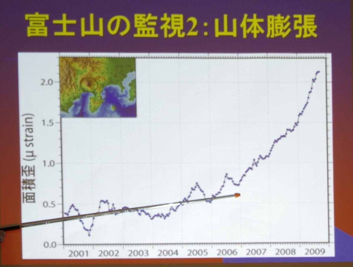 【島村】富士山は噴火したら大事件です。首都圏に大変な影響を及ぼします。そして、富士山の周辺には現在は施設が沢山あります。そういった意味で、富士山の地震の観測、監視が重要になっている。