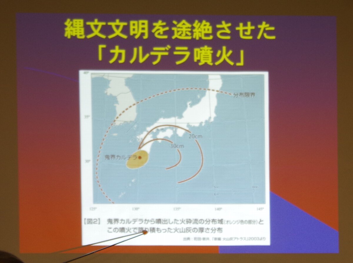 【島村】一番最近の「カルデラ噴火」としては九州の南方の鬼界カルデラというのがあります。7300年前に噴火しています。7300年前は縄文時代です。西日本では縄文遺跡が全く出ません。縄文時代に西日本に縄文人が住んでいなかったというのは有り得ないので、「カルデラ噴火」によって、西日本の縄文人は死に絶えてしまったと言われています。そういった意味で、比較的この噴火の影響が少なかった東北日本と北海道だけに縄文遺跡が残った。