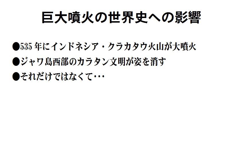 【島村】さらに前なのですが、535年にインドネシア・クラカタウ火山が大噴火しました。それによりジャワ島西部のカラタン文明が姿を消しました。しかし、それだけではなくて・・・。