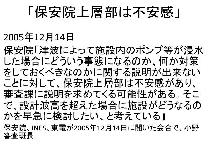 | 「保安院上層部は不安感」 | 小野審査班長 | 2005/12/14 |
