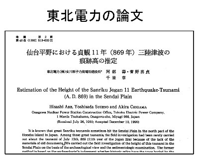 | 地震動では貞観地震を想定 | 東北電力 | 1994/05/24 |