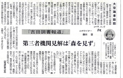 | 大型識者談話 「吉田調書報道」 第三者機関見解は「森を見ず」 | 東奥日報 | 2014/11/13 |
