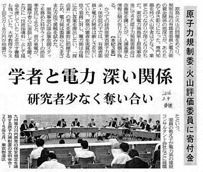 | 原子力規制委・火山評価委員に寄付金 学者と電力 深い関係 | 東奥日報 | 2016/03/04 |