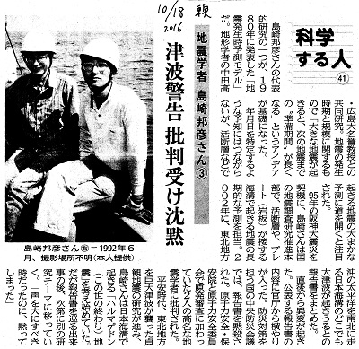 | 科学する人 地震学者島崎邦彦さん 津波警告 批判受け沈黙 | 東奥日報 | 2016/10/18 |