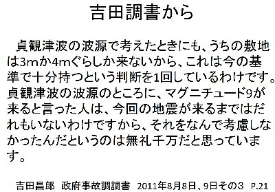 | 吉田調書から | 添田孝史 | 2011/08/08 |