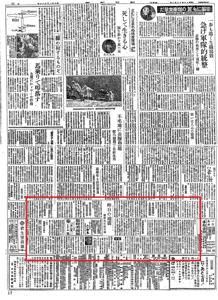 | 東海地方に地震 被害、最小限度に防止 | 朝日新聞 | 1945/01/14 |