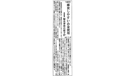 | 腐食しやすい合金使用 浜岡原発 漏水事故の原子炉 | 中国新聞 | 2001/11/28 |