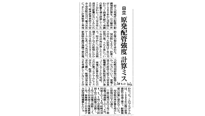 | 日立 原発配管強度 計算ミス | 読売新聞 | 2008/04/11 |