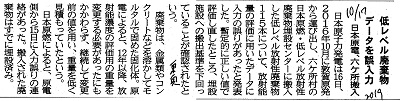 | 低レベル廃棄物 データを誤入力 日本原電、六ケ所搬入 | 東奥日報 | 2019/10/17 |